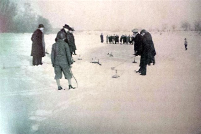 Curling na Pečni (J) – Najlákavejším miestom pre mladých ľudí v Petržalke bolo v lete i zime Pečenské rameno. Hladina bola ako zrkadlo, voda tu bola čistá a teplejšia ako v hlavnom dunajskom toku, takže ideálne na kúpanie. Jediným problémom pre šantiacu mládež boli početní rybári. V zime voda v poloslepej zátoke veľmi skoro zamŕzala a čoskoro sa na ľadovej ploche rysovali dve i tri hokejové ihriská. Nemeckí obyvatelia Petržalky hrávali na Pečenskom ramene curling (foto z r. 1905).