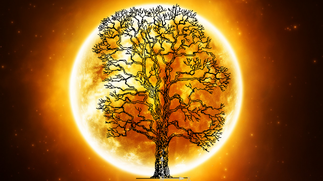 Pozri sa do slnka 9. októbra 18:07, s dobrým zrakom (a clonou) by si mohol uvidieť 15 metrový strom ukrývajúci kešku ako na obrázku.