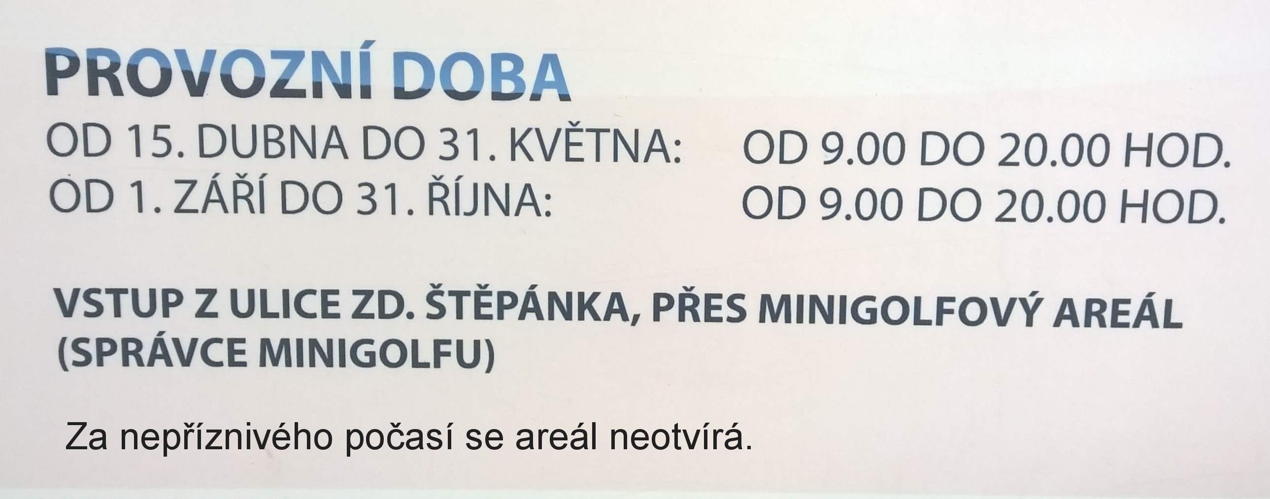 Za velice neprizniveho pocasi se areal neotvira