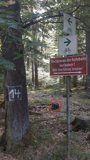 Euere Aufgabe: findet das Schild und das Cacheversteck 5 m hinter dem Schild.
