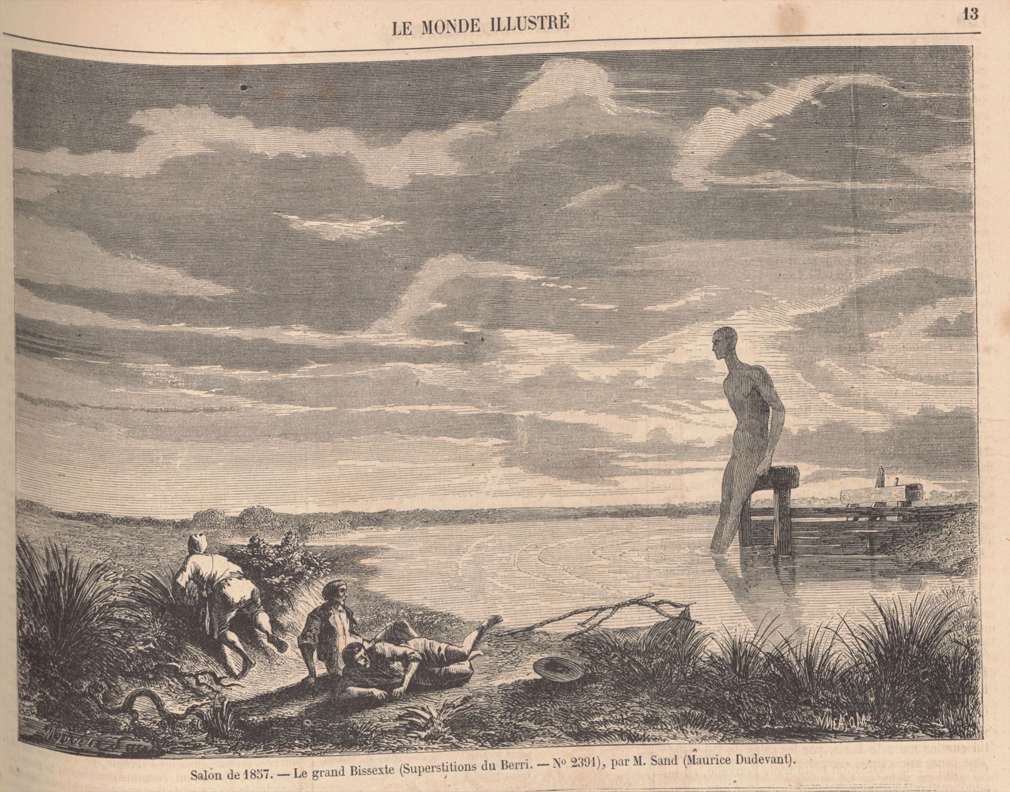Le journal Le monde illustré du 18 juillet 1857 a publié ce dessin, réalisé aussi par Maurice Sand, qui reprend les traits du tableau ci-dessus :