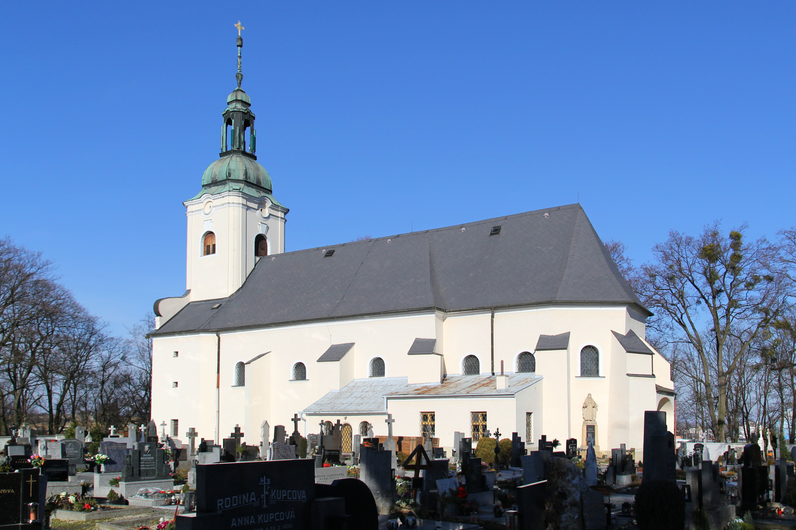 Kostel svatého Petra a Pavla se nachází na nepřehlédnutelné vyvýšenině v centru původní vsi.