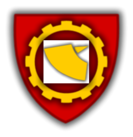 Na červeném štítě je zlaté kolo s dvanácti širokými zuby, uvnitř kola je bílý čtverec papíru a v něm zlatá stylizovaná radlice, směřující k levé straně.