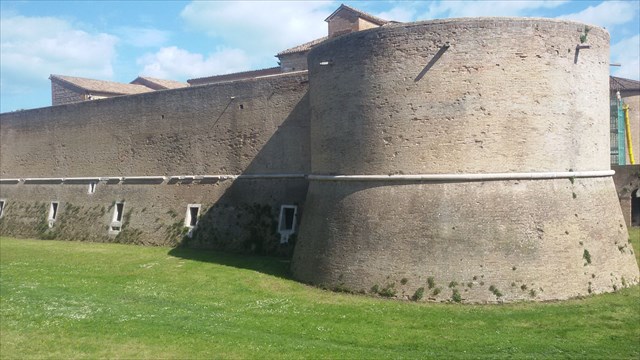 Rocca Costanza è indubbiamente il massimo esempio di architettura militare del Quattrocento a Pesaro. L'origine del suo nome è da attribuire a Costanzo Sforza, che la fece erigere tra il 1474 e il 1483. Nel 1500 Cesare Borgia occupa Pesaro e, attorno alla Rocca, costruisce il fossato in cui convoglia l’acqua del mare Adriatico.Nel 1513, la Rocca viene ceduta da Galeazzo Sforza a Francesco Maria I Della Rovere, già duca di Urbino e nuovo signore di Pesaro.