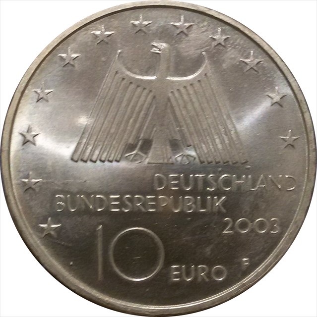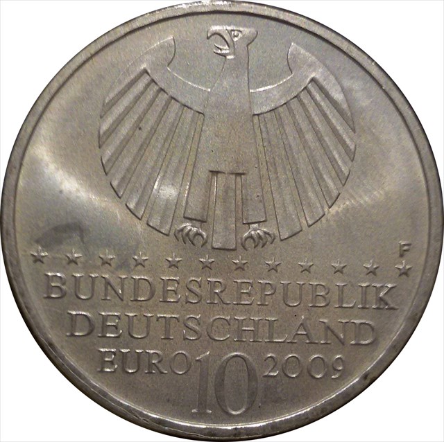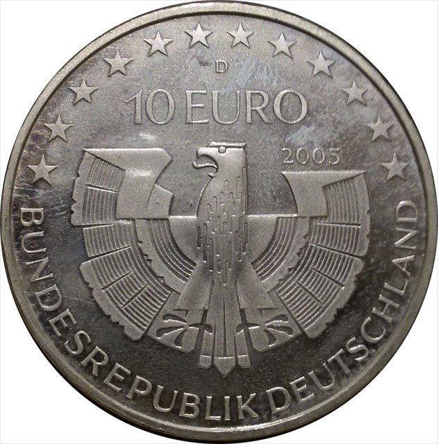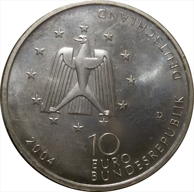 "Gedenkmünzen der Bundesrepublik Deutschland, die auf erinnerungswürdige Ereignisse verweisen, werden seit dem Jahr 1953 ausgegeben. Die amtlich limitierten Münzen sind gültige Zahlungsmittel, werden aber im Allgemeinen nicht für den normalen Geldumlauf verwendet, sondern als Sammlerstücke verwahrt. Der Bund als Inhaber des Münzrechts beauftragt die Prägeanstalten der Länder mit der Herstellung. Die Münzen sind von einem Künstler gestaltet und stellen auf der Bildseite jeweils eine Illustration im Zusammenhang mit dem Ausgabezweck dar. Die Wertseite zeigt einen Adler in einer dem Motiv angepassten Form. Die Aufsicht hat das Bundesministerium der Finanzen." (Quelle: Wikipedia)