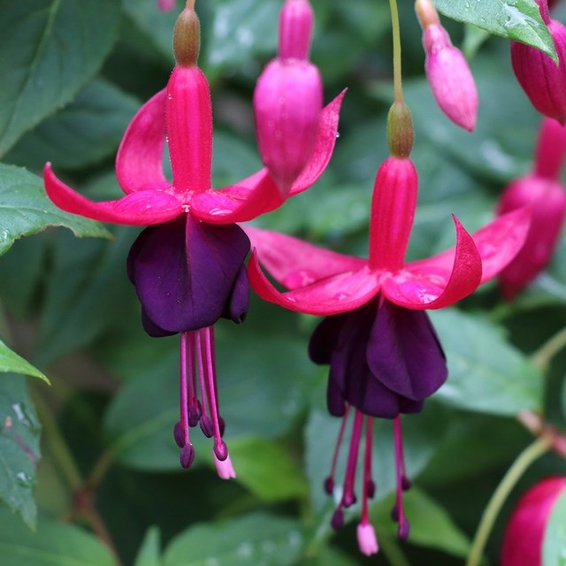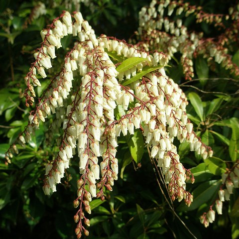 To find this mystery cache you need to identify the eight common garden shrubs pictured below and write the name of each shrub’s genus (the first part of its scientific name) in the corresponding numbered line in the grid below. To make this easier I have shaded unused cells in the grid dark purple so you can see how long each genus name is.
