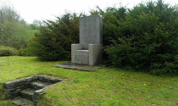 The Chair of Destiny is a sculpture of a Chieftain's Chair and was placed here on the 400th anniversary of The Battle of Kinsale. The chair was crafted by the sculptor Ken Thompson and is made from stones from all four Irish provinces. The empty chair is a symbol of loss as it is located at the location where Ireland lost its sovereignty here on 3rd January 1602.