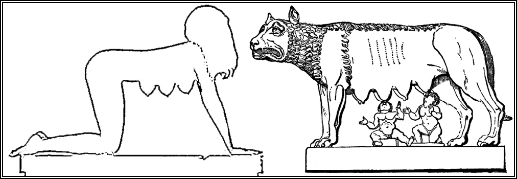 L’histoire légendaire de Romulus et Remus fait partie de la mythologie romaine. N’oublions pas non plus que la fondation de Rome n’aurait pas eu lieu sans l’aide d’une louve. Les jumeaux Remus et Romulus, nés des amours d’une ancienne princesse devenue vestale et du dieu Mars dont l’animal sacré était le loup, sont jetés dans le Tibre pour qu’ils ne puissent un jour revendiquer le pouvoir, ils échouent sur le rivage et sont recueillis et allaités par une louve. Plus tard, un nouvel établissement sera fondé sur le lieu où ils furent découverts, donnant naissance à Rome, qui garda la louve comme emblème.