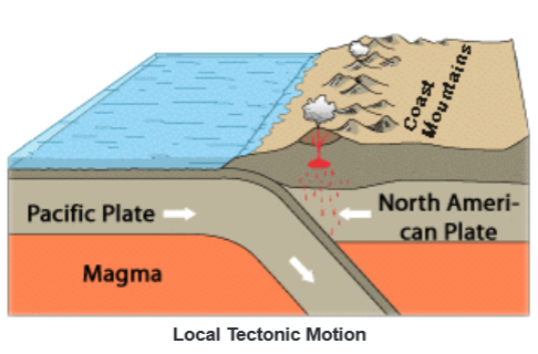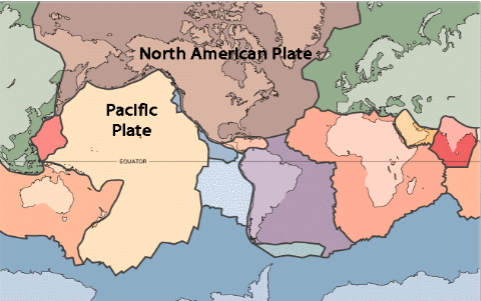 Our story begins with tectonic plates. There are 15 major tectonic plates throughout the world. Where plates meet, depending on how they are moving when they meet, they cause: uplifting (mountains), faulting (earthquakes), and/or magma injections (volcanoes).
