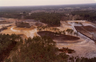 Il existait à environ 2 kilomètres de la ville, une lande marécageuse appelée l’Etang Rompu. Le site avait été autrefois exploité pour la tourbe, et l’eau accumulée dans les parties creuses, retenue par une digue en terre, avait formé un petit étang. La tradition orale rapporte que, lors d’une succession, un héritier mécontent détruisit la digue et que l’étang se vida, d’où ce nom d’Etang Rompu. L’endroit resta ainsi, imbibé par les eaux venant des Landes de Linières.