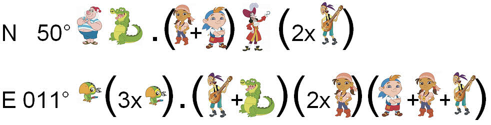 N 50° (Mr. Smee) (Ticktack Krokodil) . (Issy + Cubby) (Hook) (2x Bones)