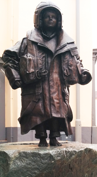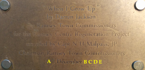‘When I Grow Up’ is a life-sized bronze sculpture by Darren Jackson, based on the real-life nephew of an RNLI volunteer. It stands on a granite plinth from Poortown quarry near Peel. It depicts a child in an adult lifeboat man's clothing. It symbolises regeneration, and the new generation growing up to take their place in society.