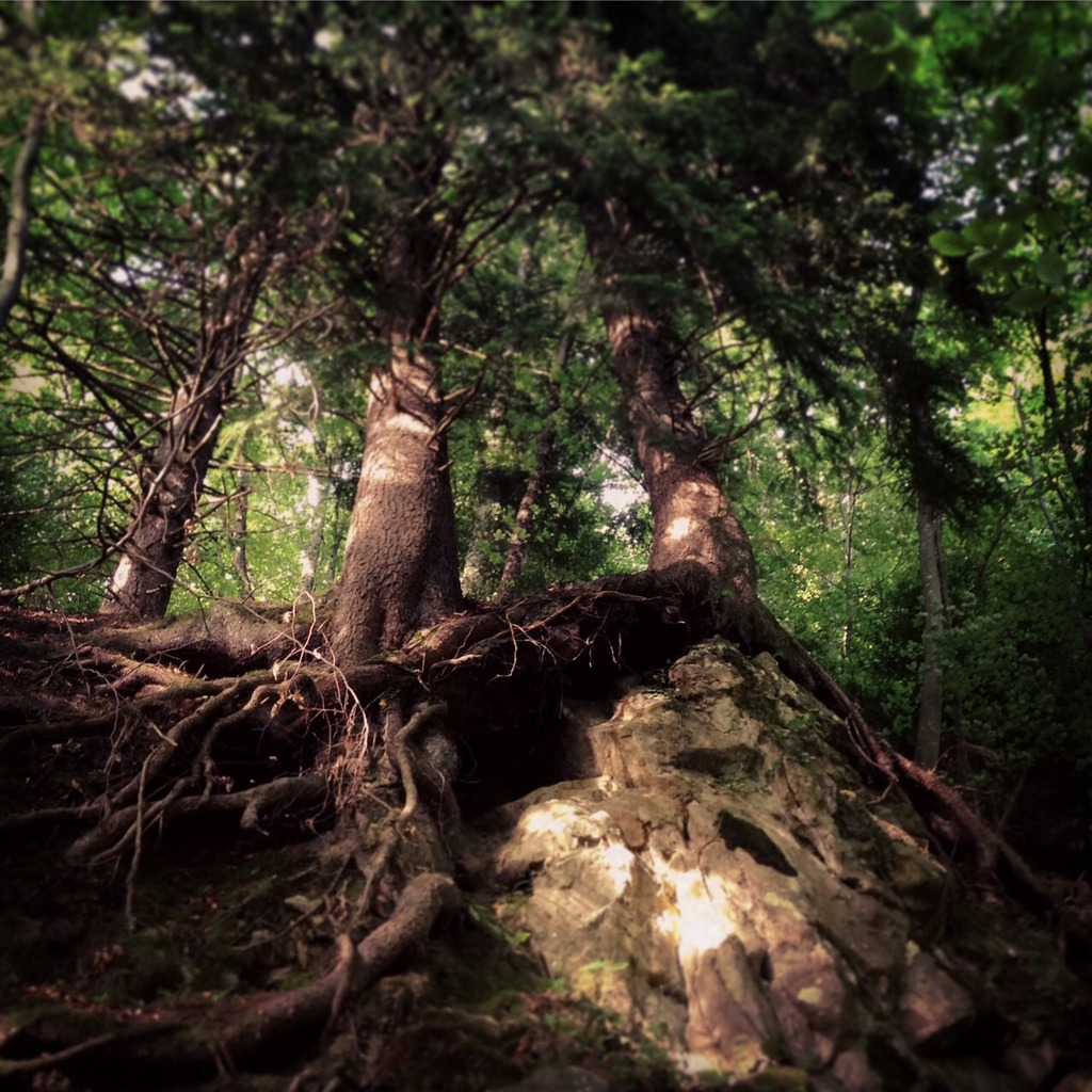 Ils reignent tranquillement, en haut de leur petite falaise, avec leurs racines qui se mélangent amoureusement.