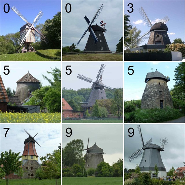 Wir haben uns einige Mühlen in der Region angesehen und sie fotografiert. Eure Aufgabe ist es, die Fotos den Mühlen zuzuordnen: