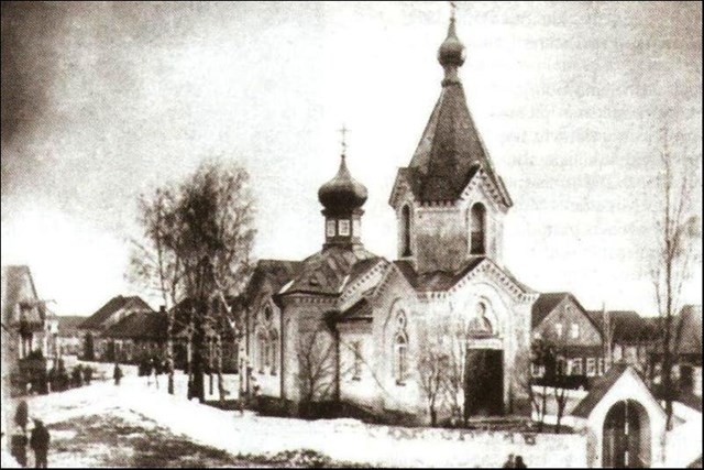 (EN) The ortodoxian parish of Merkinė was established in 1843. It was decided that there must be a church in the town and for some time religious ceremonies was held in the monastery of Dominicans. At the year 1888 church was build in place of 300 years old city hall, which was demolished by the order of tsar. The architectural type of the church is common. The same type of building is in Tytuvėnai. This architectural type sometimes is called "violent". The church changed the view of Merkinė town a lot. In the basement of the church is an authentic piece of arch that was a part of the city hall. The ortodox church of Merkinė was functioning until 1940.
