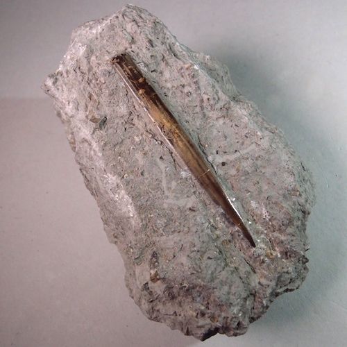 Rocks of this age come from the Cretaceous period – part of the Age of the Dinosaurs but rocks of this age in Ireland are formed from marine deposits and so no dinosaur fossils have been found. In the warm sea water, tiny sea plants called coccoliths swam about. When they died, their chalky shells settled on the bottom to form a deep deposit. Over the years, their chalky shells (sediment) was compressed to form solid rock and subsequent earth movements raised it. Limestone is formed in layers called bedding planes. In the chalk you might find the fossil remains of extinct squid-like sea creatures known as belemnites.