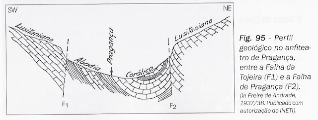 A vertente norte tem um desnível da mesma ordem 300 metros, embora a descida não se faça como do lado sul, de um só salto. No entanto, são imponentes as escarpas a pique que ocorrem na região de Pragança: as escarpas da falha de Pragança e da falha de Tojeira, que delimitam o denominado "anfiteatro de Pragança".