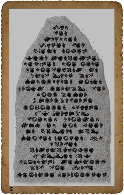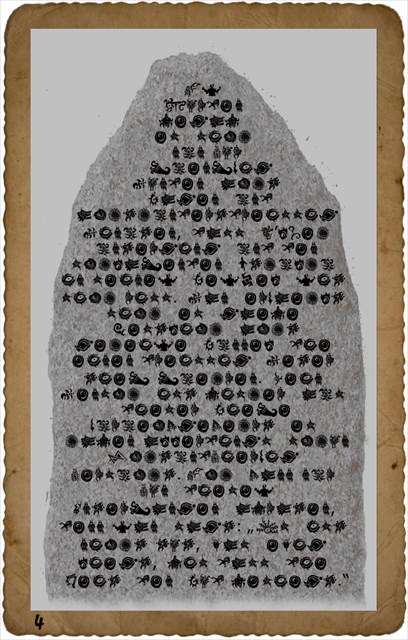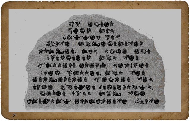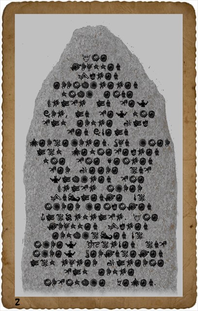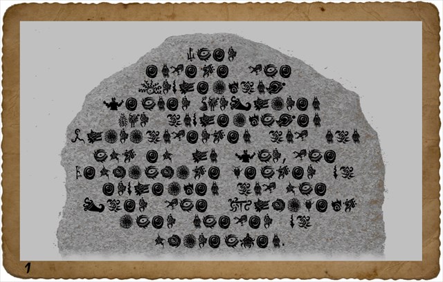 Auf dem Foto sieht man eine Steintafel mit einer seltsam anmutenden Inschrift. „Sollte das ein Zufall sein? Das wäre allerdings sehr merkwürdig. Ob ich es bei einem Weiteren riskieren soll?“ Schnell greift er sich ein weiteres Exemplar, wiederholt die Prozedur und findet tatsächlich wieder ein Foto. Nun ist sein Ehrgeiz geweckt und er suchte alle in Frage kommenden Exemplare aus der Lieferung.