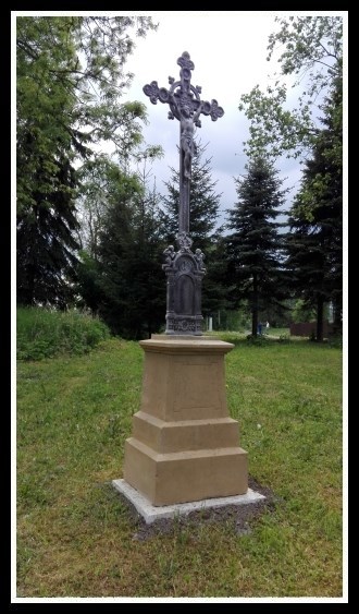 Treti zastavkou je kovovy kriz, umisteny stranou od hlavni kvetnovske cesty, skoro primo ve stredu obce. Jednalo se patrne o mistni modlitebni misto, ktere z nejakeho duvodu nahrazovalo hlavni kvetnovsky kriz, kdyz v dobach minulych nebyl jeho stav zrovna privetivy. Tento kriz je nyni zrekonstruovan, a je opet po leve strane cesty od predchozich zastavek.