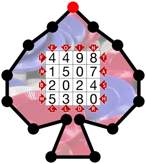1. The last word in the title of this cache is the key. Make note of the first and last letters of that word. Both of these letters can be found around the edge of the number grid above.
