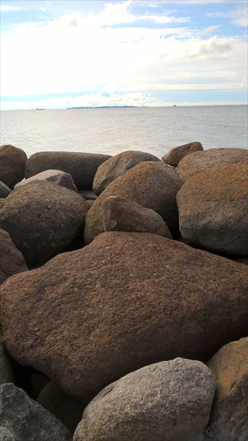 The cache is found on the harbor. It can not be retrieved from a boat, but from land, and without moving beyond the boundary of the wharf. However, in a place with boulders. That is, you should be able to walk on boulders - and and you need appropriate footwear for this - in order to find the cache.