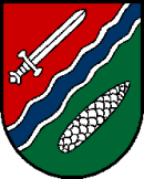 Der Kirchenpatron und Ortsnamengeber ist hier nicht schwer zu erraten, im Wappen ist er durch welches Symbol vertreten ?