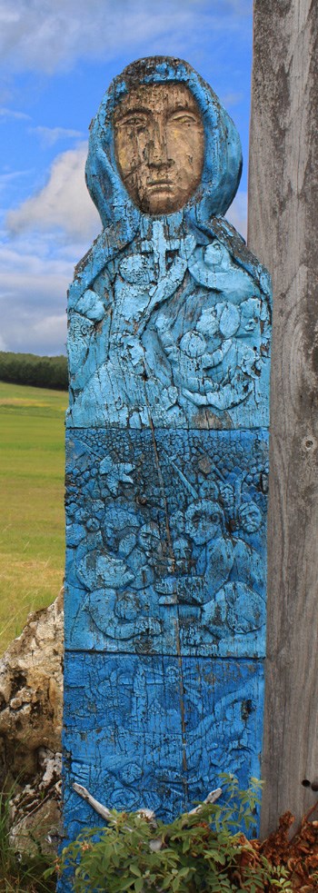 An act of God, fate, Power… Call it what you will but there must be something in it. Unordinary, roadside sculpture of the Blue Madonna gets your attention even from afar just as if it was encouraging the travellers to stop by the place. I can assure you it’s worth it. The Earth Cachers – the romantics of the Earth will be particularly pleased since after spending some time with our Lady of Sorrows, they will get one of the more interesting, if not as spectacular, Jurassic fossils. The fragment of crinoids stem, preserved in such a state (it’s possible to analyse its external and internal construction) and embedded in one of the local limestone blocks ornamenting the sculpture, certainly deserves the label “geological wonder”.