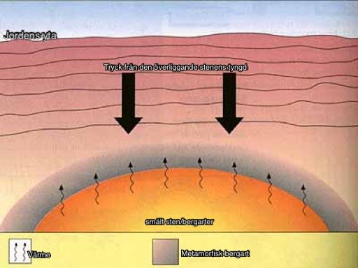 Metamorfa bergarter har bildats av att sedimentära bergarter, magmatiska bergarter eller äldre metamorfa bergarter har genom gått en omvandling, metamorfos. Om dessa bergarter utsetts för höga temperaturer, högt tryck eller en blandning av dessa så kan metamorfos ske. Vid metamorfosens så kristalliseras mineralen om, och nya mineral kan bildas. Genom tryck och rörelser i berget så blir mineralkornen ofta parallellt orienterade, vilket ger bergarten en skiffrig struktur. Mineralen kan också samlas i olika band eller ådror vilket ger bergarten ett gnejsigt utseende. Rörelser kan också ge upphov till en veckad struktur. Lösningar som strömmar genom bergrunden kan förändra bergartens kemiska sammansättning, genom att visa grundämnen tillförs och andra bortförs.