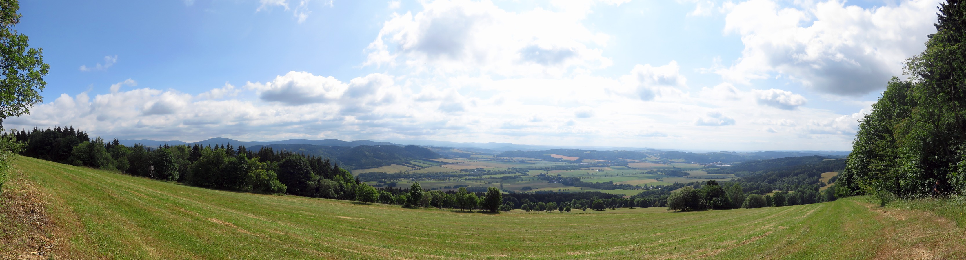 Žiji v Plzeňské kotlině, kde je krajina mírně zvlněná, některé řeky vytvoří hluboké údolí, sem tam vystupuje kopec nad okolní krajinu a nabízí daleký výhled, ale z většiny míst vidíte jen protější kopec či pár polí. Snad proto miluji vzácná místa, která nabízejí výhled do kraje, na poskládané obliny kopců a nepřeberné vrcholky hor na horizontu, na mozaiku polí, luk, remízků, alejí v údolích. Taková místa stranou turistických cest hledám v naději, že někomu udělají radost. Problém nastane, když se dostanu do kraje, kde je takových míst přehršel: stále mi totiž přijdou výjimečná. Tak snad se za tu krabičku navíc nebudete zlobit ;-)