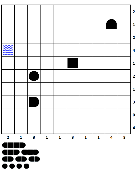 EN: The squares are numbered 0,01-1,00 from left to right like this. Use these numbers to calculate the sum of the squares for each ship.