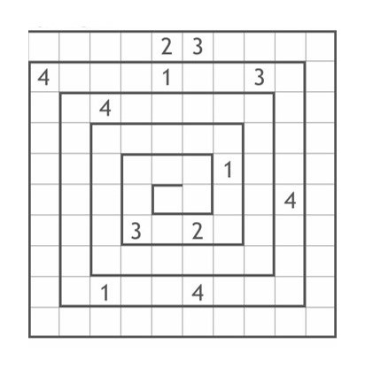 The longitude is obtained from the following 10x10 puzzle, which contains numbers in the range {1-4}.