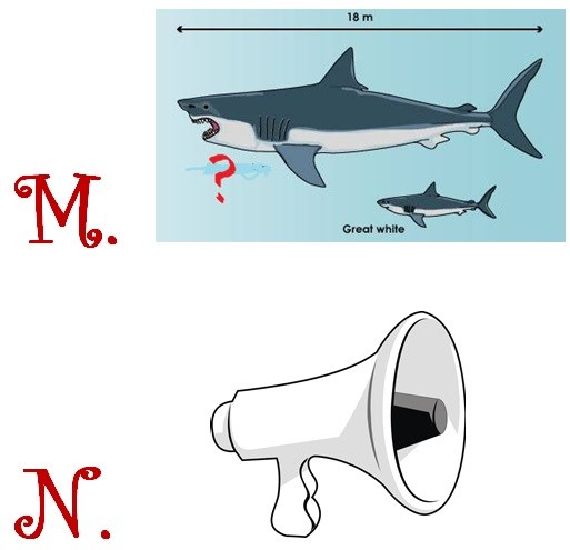 Name the pictures from A to O. Count the letters and you get the value for each picture.