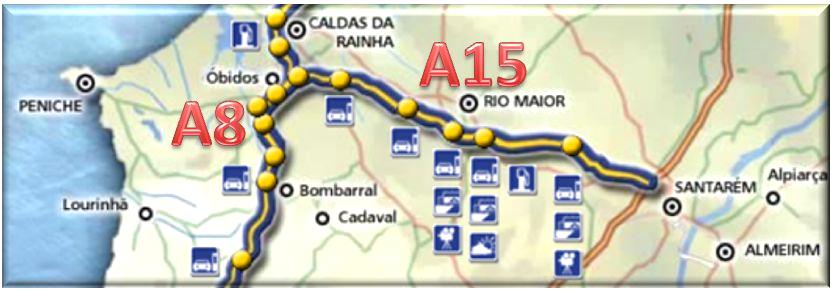 A A15, auto-estrada portuguesa, foi inaugurada a 1 de Agosto de 2002, e faz a ligação entre as Caldas da Rainha e Santarém (40km), permitindo aí a ligação à Auto-Estrada do Norte (A1), sendo prevista a sua extensão até Almeirim (55km).