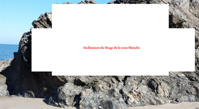 --> Question 1 : Le micaschiste visible semble le reste d'un pli beaucoup plus important (zone blanche de la photo WP1). Evaluer le degré d'inclinaison alpha de ses strates.