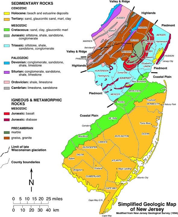 History of the region:Region: 65 million years ago the southern half of what is currently New Jersey was under water. Geologists estimate when large ice sheets waxed and waned, potential sea levels rose up to 300 feet above current elevations. During the Mesozoic Era also known as the Cretaceous period, the northern portion of NJ was above sea level. In the Coastal Plain Province of New Jersey, the Atlantic ocean advanced and retreated across the coastal plains numerous times. Late Cretaceous ocean tides and ancient rivers eroded the exposed Atlantic Highlands.