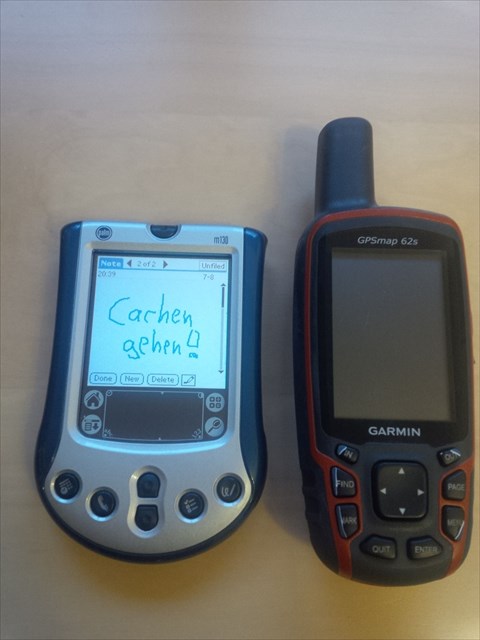 Auch im Jahr 2015 will ich das eine oder andere Museumsstück präsentieren. Was Ihr hier seht, ist noch gar nicht so alt. Vielleicht hat der eine oder andere sogar noch so einen PDA - einen Personal Digital Assistent - im Einsatz. Mittlerweile gibt es die Dinger bei ebay für einen Euro. Ja ja, als das Modell von 12 Jahren herauskam, war es "der Renner" im großen Business. Jeder, der wichtig war, hatte so ein Ding. Da konnte man unterwegs immer schön mit angeben, seine zuvor geladenen E-Mails und Termine lesen, auch E-Mails schreiben, die dann später am PC mit dem E-Mail-Server synchronisiert wurden. Dazu hatte das Wunderwerk natürlich auch einen Taschenrechner und weiteren Schnick-Schnack. Und nun? Genug gebrabbelt, Ihr könnt ja auch Tante Google und Onkel Wiki fragen, wenn Ihr mehr wissen wollt. Für den Cache braucht Ihr das Internet jedenfalls nicht. Wenn Ihr ihn finden wollt, ja dann beantwortet die Fragen und Ihr erhaltet die Koordinaten. Ja, so einfach ist es bei Onkel Eule! Frage 1: Schaut Euch das Gerät auf der rechten Seite an. Welche Zahl steht darauf? Rechnet: Zahl*2+6 = M Frage 2: Welches Modell seht Ihr auf diesem Bild? Die Zahl ist X. Rechnet nun: A = X-130. Frage 3: Um wieviel Uhr hat Onkel Eule das Foto gemacht? (Hier sind wir mal nicht so pingelig, kein Exif, keine Dateieigenschaften nötig) Die Stunde minus 15 ist B. Frage 4: Welches Garmin-Modell hat der Onkel? Die Modell-Nummer minus 53 ist C. Frage 5: Was hat der Onkel denn auf das Display geschrieben? Die Anzahl der Wörter plus 6 ist D. Frage 6: In welchem Jahr wurde das Modell auf den Markt gebracht? Die Quersumme minus 4 ist E. Frage 7: Neben dem PDA seht Ihr noch ein Gerät. Was kann man damit machen? Es wird genau ein Wort gesucht (Hinweis: schaut mal auf den Palm). Die Anzahl der Buchstaben ist F. Frage 8: Warum steht der PDA in Onkel Eules EDV-Museum, wenn er noch so gut funktioniert? Die richtige Antwort besteht aus 6 Wörtern. Berechnet den Buchstabenwert (a=1, b=2, c=3 etc..) Kauft Euch nun einen Palm (bei Ebay für 1 Euro) und ruft den Taschenrechner auf. Nun rechnet: (Buchstabenwert x 2+10)/2-Buchstabenwert) Das Ergebnis plus 4 ist G. Hier sind die Koordinaten: N 51° 38.ABC E 007° 02.DEF Und hier könnt Ihr Eure Rechenkünste überprüfen: GEOCHECKER.