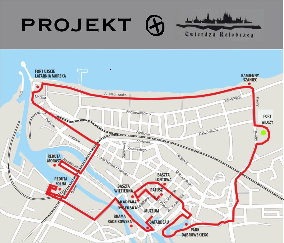 Projekt TWIERDZA KOŁOBRZEG to 12 skrytek usytuowanych na trasie Miejskiego Szlaku Fortfikacji (ok. 12 km długości). W celu znalezienia finałowego kesza , należy odszukać 10 skrytek. Osiem z nich zawiera cyfry potrzebne dla określenia współrzędnych, a dwie klucze niezbędne do określenia lokalizacji skrytki Fort Wilczy. Dlatego nieodzowne jest spisanie danych z dziesięciu z nich. Jedna skrytka nie posiada żadnych infomacji. Wszystkie kesze oznaczone są numerami wyznaczającymi najdogodniejszą trasę poszukiwań. Stąd też #1 przy oznaczeniu Parku Dąbrowskiego. Miłej zabawy!