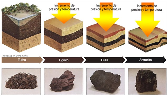The deposits originate from plant waste trunks, branches, plants, leaves, who were deposited at the bottom of wetlands in different layers, and they break down, first in an atmosphere with oxygen and with time being covered with sediment, giving way to a process of anaerobic decomposition, ie without oxygen.