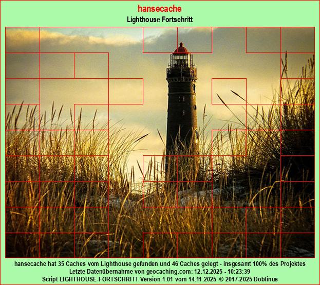 Wer mag, kann seinen "Fortschritt" für die Lighthouse Matrix in seinem Profil bei geocaching.com dokumentieren. Wie man die folgende Grafik in sein Profil einbauen kann, wird weiter unten beschrieben.