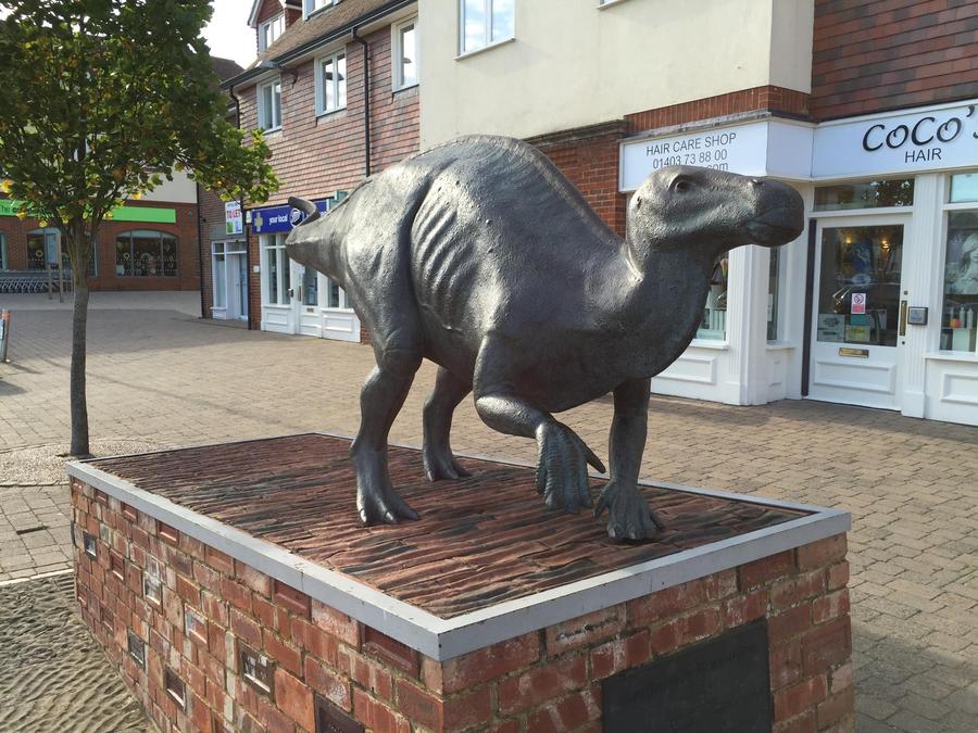 The centrepiece of Southwater’s Lintot Square is a sculpture of an Iguanodon. The dinosaur, known colloquially as ‘Iggy’, was discovered in the 1920s in the brick works in the village. The dinosaur was fossilised in clay that was likely part of a prehistoric flood plain or swamp.
