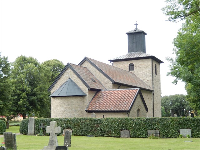 Kyrkan uppfördes i romansk stil på 1100-talet och bestod då av långhus, kor och absid. Under senmedeltiden förlängdes kyrkan åt väster. Sannolikt var det då som kyrkans innertak försågs med kryssvalv. Möjligen tillkom då sakristian, ett kyrktorn och ett vapenhus i söder. 1676 - 1687 byggdes kyrkan om och fick sin nuvarande längd. Gamla tornet revs och inlemmades i långhuset. Ett nytt torn uppfördes väster om det gamla. Koret dekorerades med kalkmålningar. 1816 revs södra vapenhuset och ett nytt vapenhus inrymdes i tornets västra fasad. Samtidigt byggdes tornet om till sitt nuvarande utseende och fick tak med lanternin. 1941 - 1942 byttes långhusets takbeläggning ut från ekspån till enkupigt lertegel. Absid- och torntak belades med järnplåt. En omfattande renovering genomfördes 1952 - 1953 under ledning av arkitekt Adolf Niklasson i Skara. Fasadens kalkputs ersattes då av tunn genomskinlig puts. Några medeltida fönster togs fram. Ny bänkinredning tillkom och sakristian fick ny inredning.
