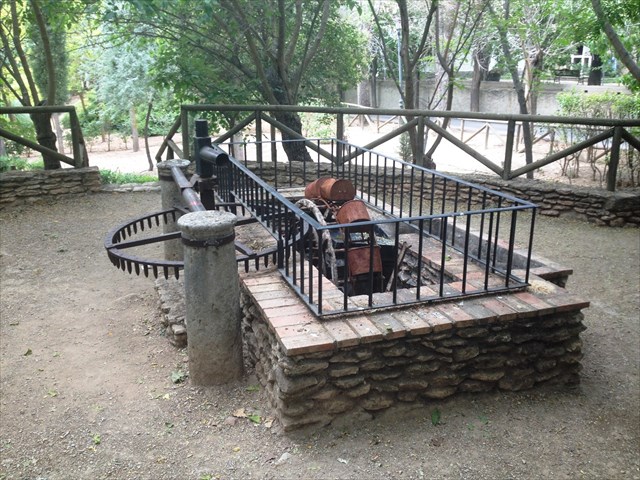 Para llegar a ella desde Los Baños, tendrás que recorrer todo el perímetro de este edificio, cruzar un nuevo puente sobre el arroyo y adentrarte en la arboleda. Echa un vistazo al croquis por si no te sitúas. Cuenta con una estrecha escalera con la que se accede a la noria. Esta es la segunda de las pistas.