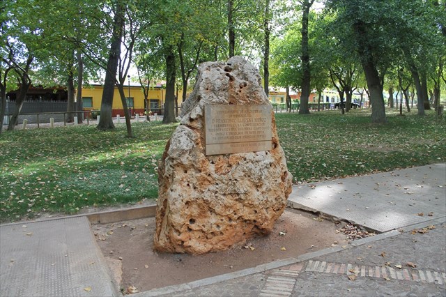 ¡¡ OJO !! Las coordenadas proporcionadas inicialmente corresponden a una gran piedra que se encuentra en el paseo de los plátanos, muy cerca de la entrada. En ella se encuentra una inscripción que recuerda que hace pocos años todo el paraje fue restaurado. Será un buen punto de partida para nuestro recorrido.