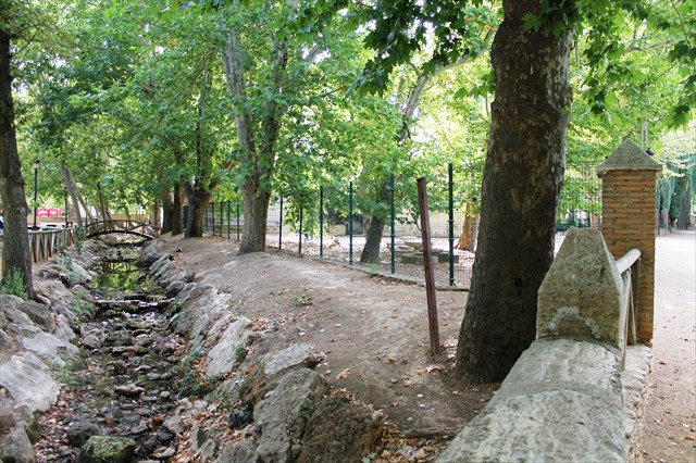 Iniciamos nuestra aventura avanzando por el paseo de los plátanos, en dirección sur. Dejamos a nuestra izquierda un bonito parque infantil, recientemente acondicionado. Cruzamos el puente sobre el arroyo que, a día de hoy, se encuentra otra vez sin agua, y llegamos a la pradera. El edificio de Los Baños se encuentra justo en ese punto. Actualmente se ha convertido en el Centro de Interpretación del Agua de Valdepeñas, y aunque lleva cerrado años y años, el Ayuntamiento lo sigue publicitando y promocionando como si nada (ver noticia).