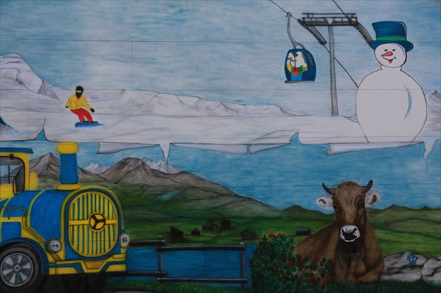 Unfortunately, this beautiful mural has been removed, so here's the solution: 2