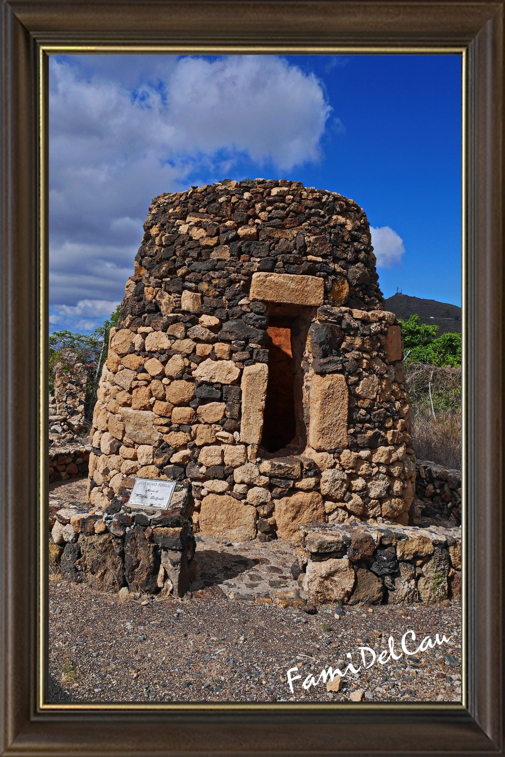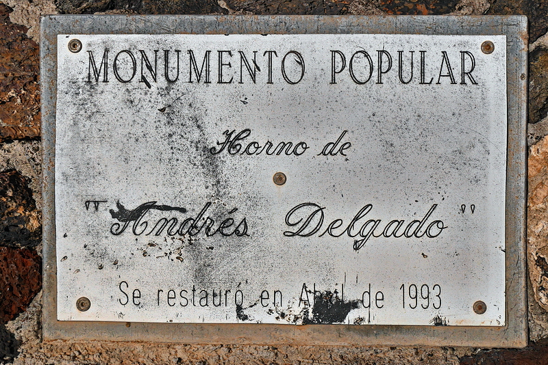 Este horno fue construido a finales del siglo XIX, principios del XX, por D. Andrés Delgado Marrero, corresponde al tipo de doble cámara, comúnmente utilizado en la isla. Su altura supera los 4 metros y sus paredes sobrepasan los 75 cm. de ancho. Su interior es de piedra muerta recubierta con el mismo barro que se utilizaba para la elaboración de la teja. La parte externa está confeccionada con la misma clase de piedra y con tosca; asimismo, las piedras labradas (o escogidas) sólo se utilizaban en la boca del horno o para los bordes.