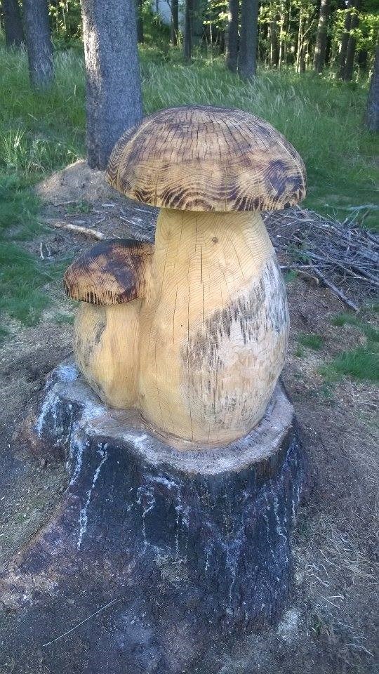 Bylo nebylo, za devatero horami, devatero lesy, rozléhá se na západě Krušných hor malá lehce obydlená vesnička Pernink. Psal se tehdy červenec roku 2015, bylo sychravo a v Perninku se výborně dařilo houbám. Jeden takový hříbeček si vybral krásné místečko s výhledem na vísku. Oproti ostatním houbám měl ale obrovskou výhodu, za zády se mu tyčil starý městský vodojem, který shromažďoval desítky pramenů výborné vody, tudíž měl kolem sebe báječné vlhko a výborně se mu dařilo. Dny plynuly jako voda a hříbeček rostl a rostl, až vedle něj vyrostl mladší sourozenec. Červenec se pomalu chýlil ke konci a blížil se srpen. Z hříbečka byl velký chlapák, jenže v tom přišla vedra jako blázen! "Néé, tolik sluníčka néé!", skučel hříbeček, když mu rtuť na teploměru vylítávala na 33° C. Voda ubývala, nakonec se ze země úplně vytratilo vlhko a tak se stalo, že nám hříbeček i se svým mladším sourozencem zdřevnatěl. A pokud nám ho nějaký houbař nesebral, tyčí se tam náš drahý hříbeček dodnes.