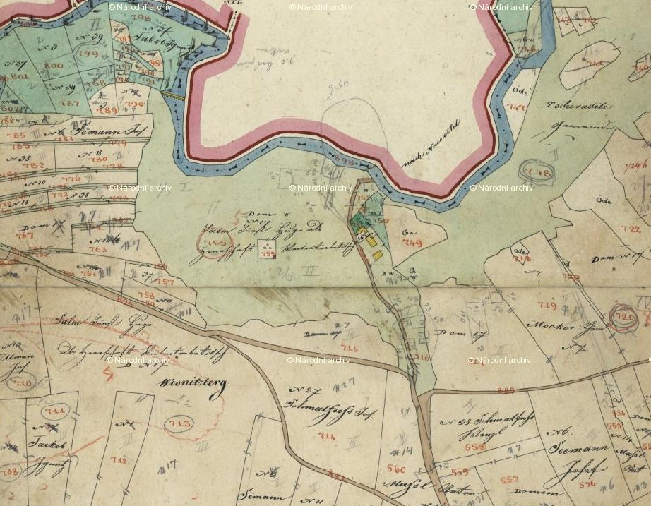 Židovský hřbitov na archivních mapách a fotomapě z 50. let.
