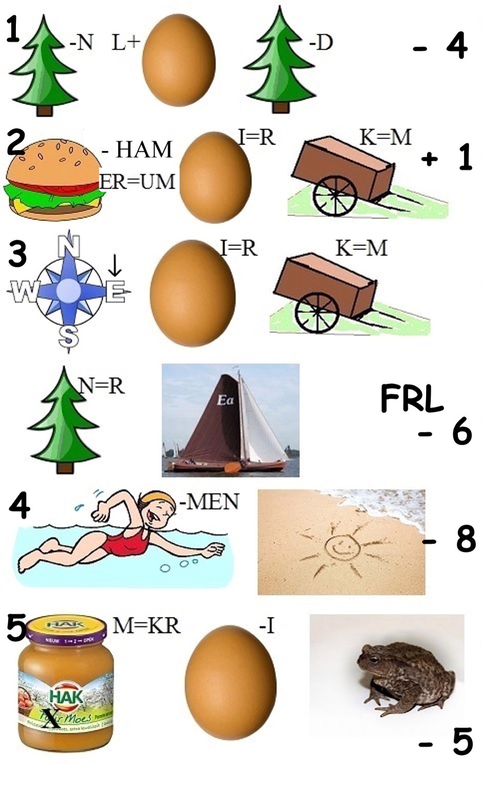 Reken per nummer de woordwaarden uit en daarna de stapelwaarde. Tel dan op of trek dan af of doe niets meer. Kijk goed naar alle informatie! FRL staat er bij, omdat u het Friese woord moet gebruiken en dan gaat het om het woord bij de kompasroos.