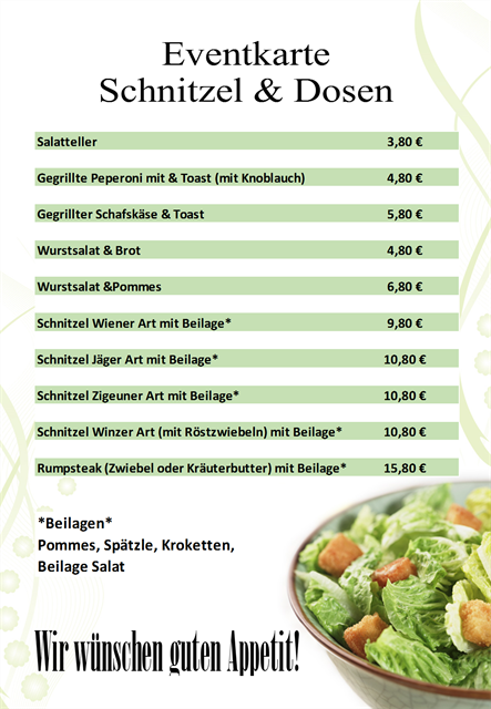 Wir haben an diesem Tag eine kleine Speisekarte (Siehe Foto). Um es der Küche einfacher zu machen wäre es nett Euren Essenswunsch mitzuteilen.